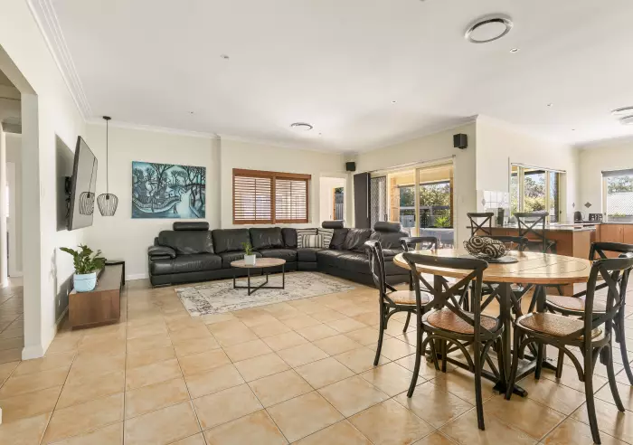 As you step inside, an extra-wide hallway leads to the heart of the home—an open-plan living, dining, and kitchen area that seamlessly extends to the alfresco dining space, creating the perfect setting for all year round indoor-outdoor entertaining. The kitchen is thoughtfully appointed with quality appliances, including a Smeg gas cooktop and oven, Fisher & Paykel dishwasher, and generous storage and bench space, making both everyday cooking and hosting a breeze. Additional formal living and dining areas complement the central hub of the home, offering versatile spaces to relax, entertain guests with ease, or enjoy everyday moments with friends and family.