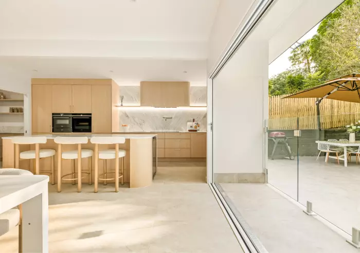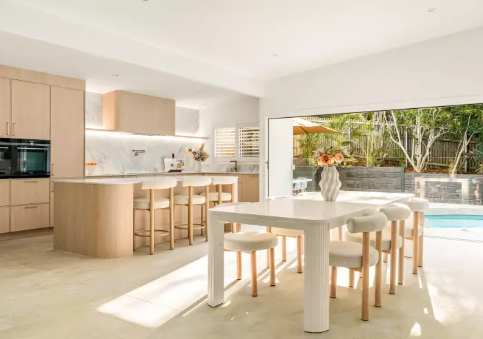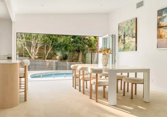 On the main level, the open plan kitchen living and dining takes centre stage – flowing seamlessly out through wide bi-fold doors to the stunning outdoor entertaining area and centrepiece Tracey Wickham pool. This is where you will spend most of your time, simply enjoying the environment surrounded by an incredible garden full of mature and rare palms, looking back into your own resort-style haven - you can only smile and appreciate everything that you see!