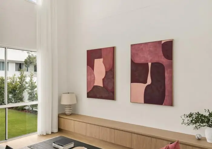 Upon entry, engineered oak timber flooring provides the platform for cascading natural light that flows in from oversized windows. A soft, neutral palette is complemented by subtle curved design elements, creating a refined yet inviting aesthetic.